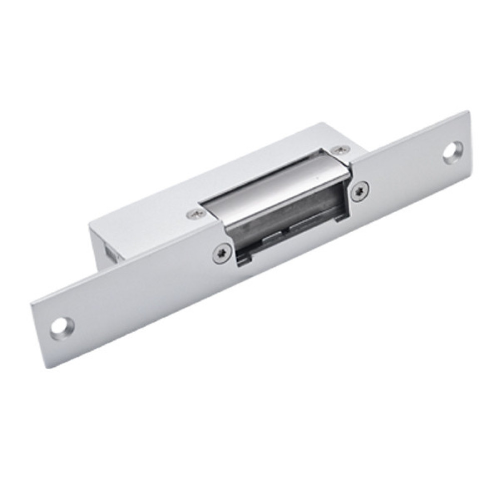 Врізна широкоформатна електромеханічна клямка ZKTeco AL-131NO - простий виконавчий пристрій в системах контролю і управління доступом (СКУД). Без живлення закрита. При подачі напруги розблокується.Засувка AL-131NO представляє собою відповідну частину з механічним фіксатором для звичайного механічного замку або дверної ручки з язичком. Підходить для установки на металеві двері.