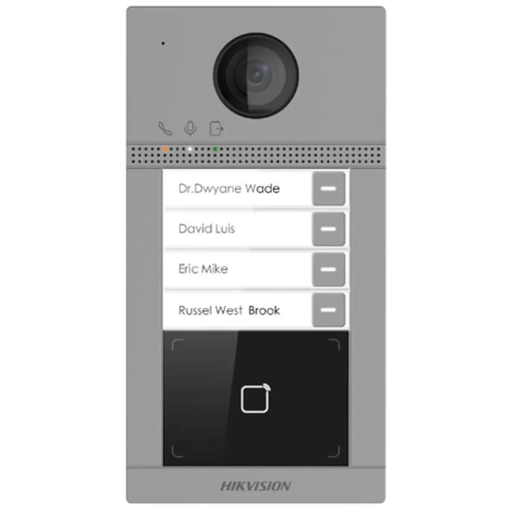 4 абоненти; врізний монтаж; кардідер для карт Mifare (пам'ять на 10 000 карт); IP65, IK08; 12 VDC/PoE