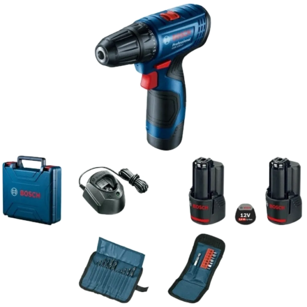Дриль-шуруповерт GSR 120-LI зручно свердлити отвори в деревині (20 мм), металі (10 мм), закручувати і відкручувати гвинти і шурупи діаметром до 7 мм. Легка (0,8 кг), компактна (182 мм завдовжки), ергономічна модель із ізольованою Soft Grip поверхнею рукоятки. Нею зручно працювати у важкодоступних місцях, свердлити та закручувати над головою. Поставляється у зручній для зберігання та транспортування інструменту валізі з двома 12V 2 Ah акумуляторами та зарядним пристроєм GAL 1210 CV. Плюс набір з 10 біт з магнітним тримачем та набір з 12 свердл.
