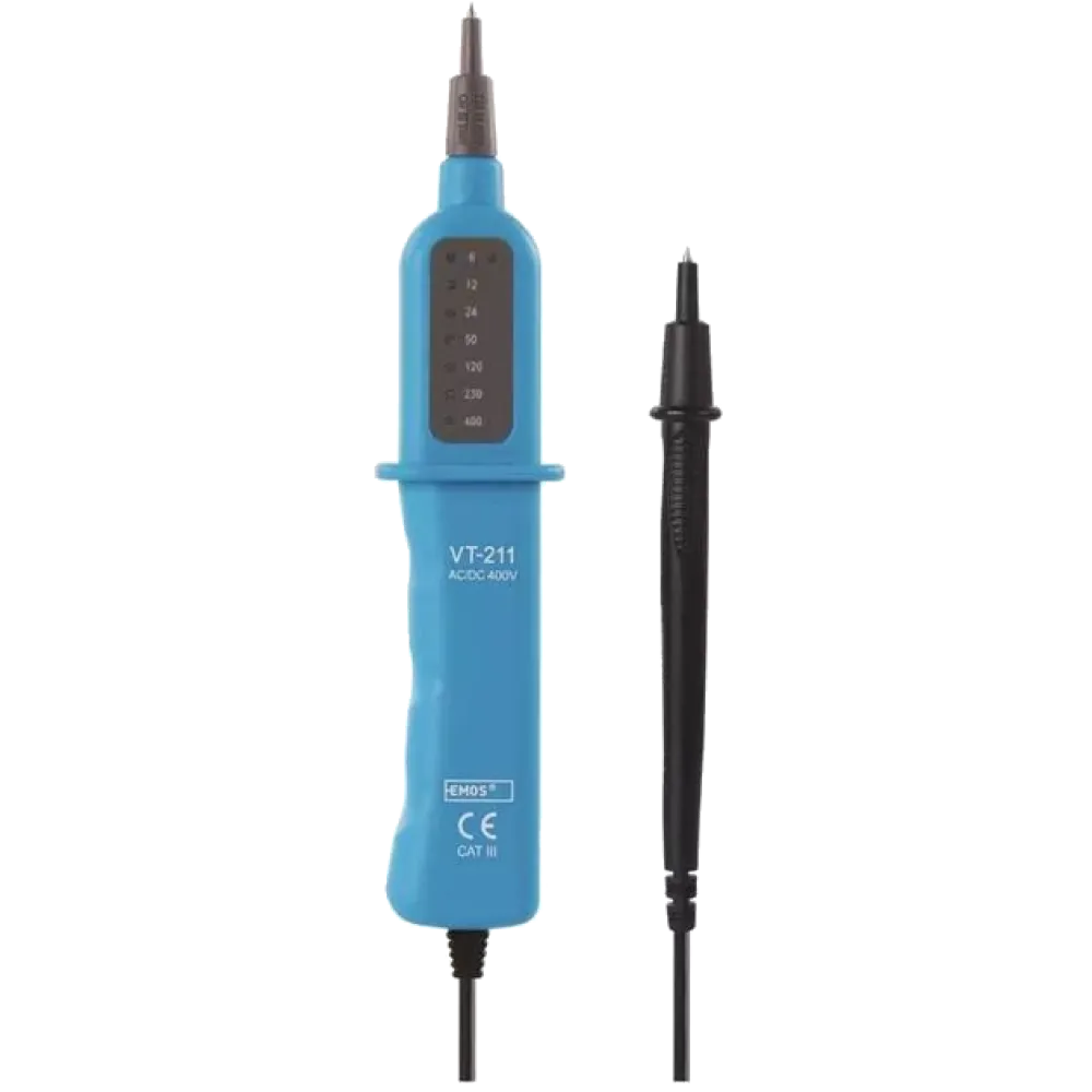 ● Категорія та діапазон вимірювань: 6 В – 12 В – 24 В – 50 В – 120 В – 230 В – 400 В змінного/постійного струму, CATIII;● Індикація: поступове збільшення світлодіодів;● Діапазон частот: 0-60 Гц;● Робочий цикл: макс. 10 з включеною (вимірювання); 240 з затримка (не виміряти);● Ступінь захисту: IP54