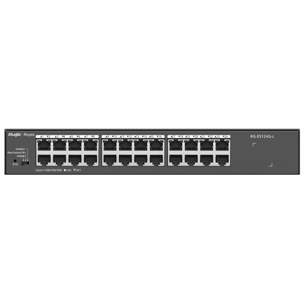 ● Downlink порты: 24x RJ45 (10/100/1000M);● Коммутационная способность 48 Гбит/с;● Скорость пересылки 35.7 мп/с;● Питание: 100-240В AC;● Рабочая температура: 0º - + 45ºC;● 280x125х43.6мм